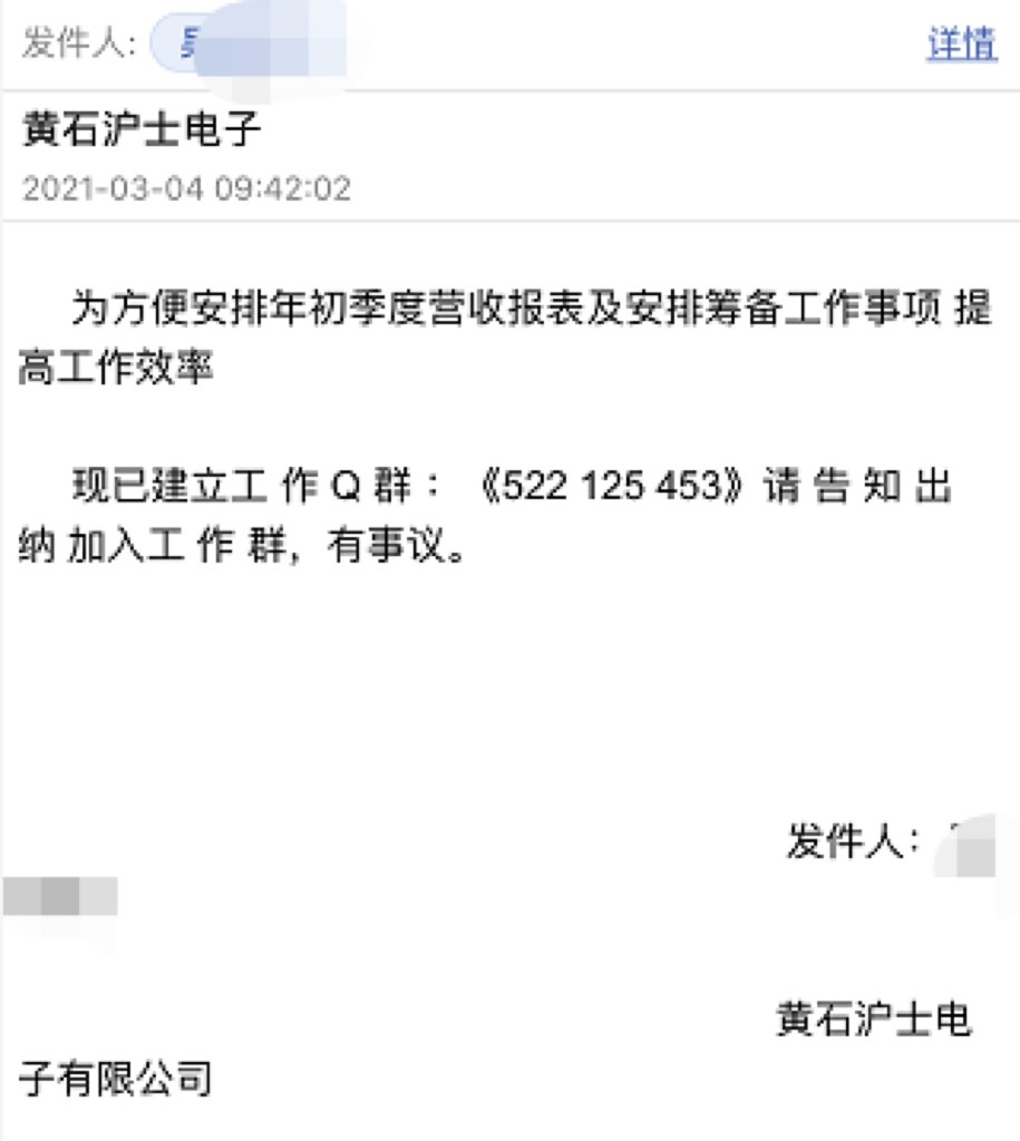 騙子冒充黃石董事長(zhǎng)讓出納加入QQ工作群截屏: