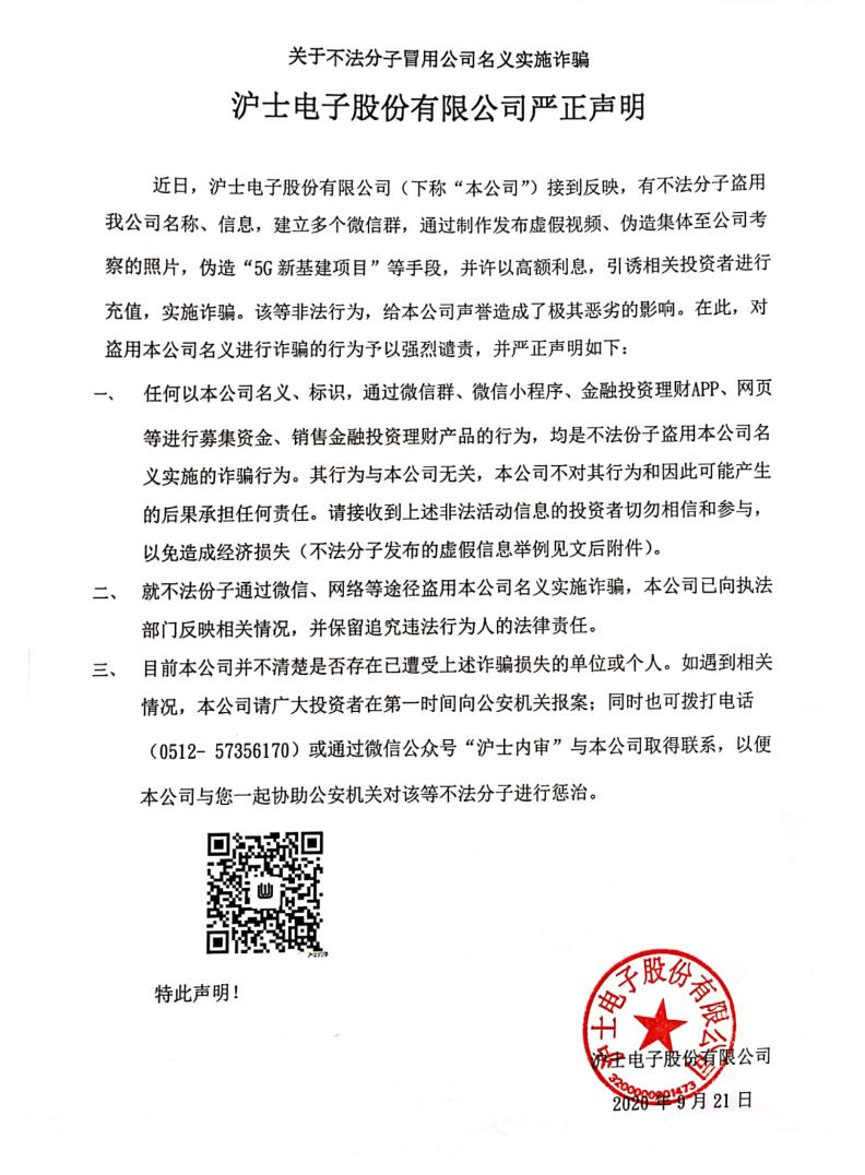 2020年09月21日,關(guān)于不法分子冒用公司名義實(shí)施詐騙的嚴(yán)正聲明